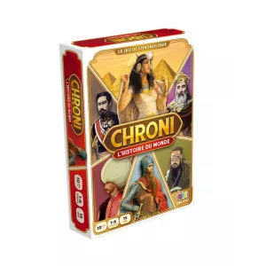 Chacun son tour, un joueur tente de situer une de ses cartes dans la frise chronologique. Le premier à ne plus avoir de carte dans sa main remporte la partie. Mais attention si on se trompe, on pioche. De la connaissance, de la déduction mais aussi un peu de chance permettent de gagner. Mais la mécanique est basée sur l'apprentissage par l'erreur. "Je ne perds jamais. Soit je gagne, soit j'apprends" -Nelson Mandela Chroni est un jeu instructif et évolutif avec toute une collection de thèmes à mélanger.
