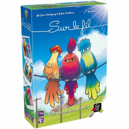 Contenu : 3 poteaux, 1 fil élastique, 24 oiseaux répartis en 3 familles [Les Zébouriffés / Les Koupacrêtes / Les Poilozieux], 24 cartes Selfie, 20 œufs, 6 jetons Smartphones (réservés au mode coopératif), la règle du jeu.