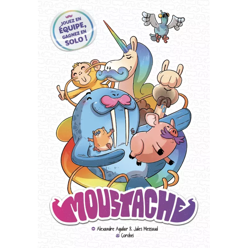 Moustache est un jeu de plis à rebondissements, pour 3 à 6 joueurs. À chaque manche, les équipes sont redéfinies aléatoirement et une nouvelle règle vient chambouler la partie : hiérarchie des couleurs inversée, jokers délirants, effets de cartes... Rien n’est jamais figé ! Grâce à un système de règles évolutives et de cartes Équipe, chaque partie est unique et pousse à l’adaptation constante. On y retrouve le plaisir immédiat du jeu de plis, enrichi d’un goût de chaos contrôlé. Facile à apprendre, drôle à jouer, idéal pour animer une soirée famille ou amis.