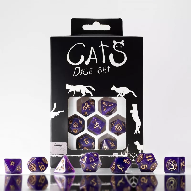Les chats sont incroyablement indépendants. Ils suivent toujours leur propre voie, sans égard aux traditions. Mais cela veut-il dire que nous pouvons les ignorer? Oh non non non -- ils ne se laisseront pas être si audacieusement négligés. Ils peuvent sauter juste devant notre nez avec une nonchalance absolue, peu importe ce que nous faisons et où nous le faisons. Nous connaissons tous la sensation de voir soudainement un furry revenir sur une webcam au lieu d’un interlocuteur; nous savons aussi ce que c’est que d’essayer de travailler alors qu’un chat vient de s’installer sur le clavier. C’est comme ça que Purrito est, un félin extraordinaire aux cheveux violets et brillants et aux yeux dorés. Vous ne savez pas où elle est? Ne vous inquiétez pas, elle viendra quand elle le voudra et prendra vos genoux, votre tête et vos mains et vous fera mettre de côté tout ce que vous faisiez. Elle trouvera le meilleur emploi au monde pour vous : elle-même ! Est-il même possible de ne pas l’aimer ? Non ! Vous ne pouvez pas. C’est pourquoi nous lui avons dédié ce merveilleux jeu de dés Cats !