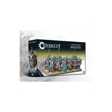 La boîte "City States - Hoplites (Dual Kit)" contient 12 figurines en plastique à l'échelle 38mm et 2 cartes de commandement pour le jeu Conquest. Figurines vendues non assemblées et non peintes.