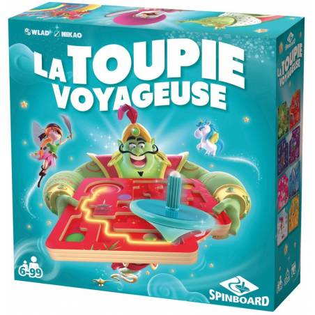 LA TOUPIE VOYAGEUSE est un jeu solo ou coopératif pour tout âge dès 6 ans. Chaque mission représente un parcours que les joueurs vont devoir effectuer avec une toupie en la passant d’un plateau à un autre. Ils représentent 8 mondes merveilleux en relief avec plusieurs cibles. Au début de chaque mission, les joueurs identifient ensemble les cibles à atteindre et se répartissent les plateaux indiqués. Le premier joueur lance la toupie avec l’aide du propulseur et la déplace en inclinant son plateau pour la diriger vers sa cible. Une fois la cible atteinte, le joueur guide la toupie vers la sortie pour la faire passer sur le plateau tenu par le joueur suivant. La dynamique de relais entre les joueurs se poursuit ainsi jusqu’à la réalisation complète de la mission. La difficulté des défis s’accroit progressivement. Des trophées autocollants permettent de valider chaque mission réussie !
