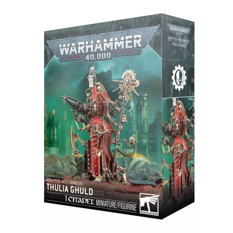 Ce kit en plastique permet d'assembler Thulia Ghuld, une commandante impitoyable pour vos armées de l'Adeptus Mechanicus dans les parties de Warhammer 40,000. Équipée d'un résonateur à conversion de classe Jericho, elle peut menacer les ennemis lourdement protégés tout comme les hordes d'infanterie. Elle porte également le tristement célèbre Bâton de la Forge Guerrière, une arme redoutable qui permet d'infuser à tout Skitarius à portée de données une ferveur focalisée. Thulia Ghuld constitue un ajout rapide et puissant à votre première ligne.